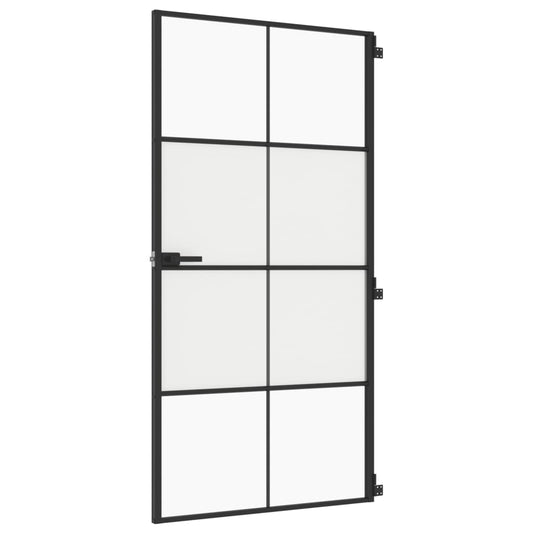 Binnendeur Smal 102,5X201,5 Cm Gehard Glas En Aluminium Zwart