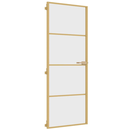 Binnendeur Smal 83X201,5 Cm Gehard Glas En Aluminium Goudkleur