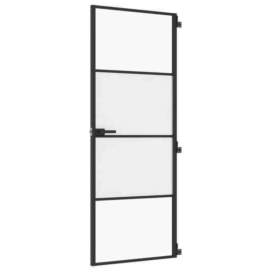 Binnendeur Smal 76X201,5 Cm Gehard Glas En Aluminium Zwart