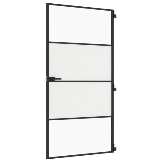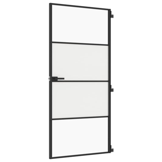 Binnendeur Smal 102,5X201,5 Cm Gehard Glas En Aluminium Zwart