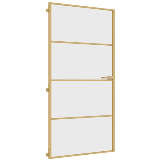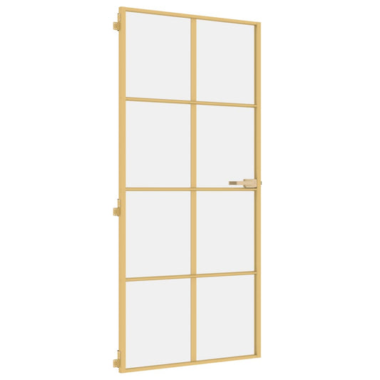 Binnendeur Smal 93X201,5 Cm Gehard Glas En Aluminium Goudkleur