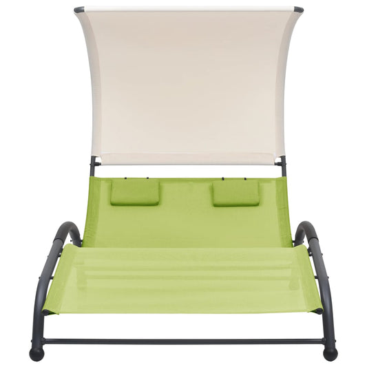Ligbed Tweepersoons Met Luifel Textileen Groen En Crèmekleurig
