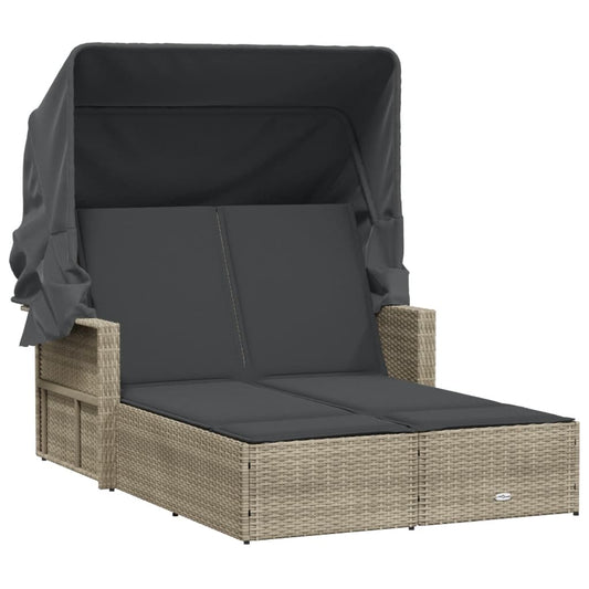 Ligbed 2-Persoons Met Luifel En Kussens Poly Rattan