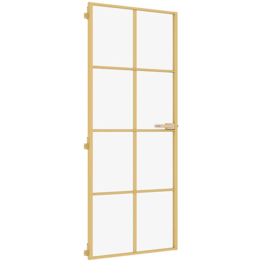 Interior door narrow 83x201.5 cm tempered glass and aluminum gold color