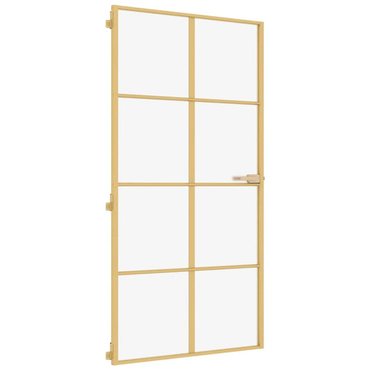 Interior door narrow 102.5x201.5 cm tempered glass and aluminum gold