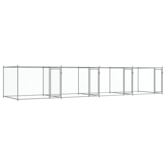 Hondenhok Met Deuren 8X2X1,5 M Gegalvaniseerd Staal Grijs